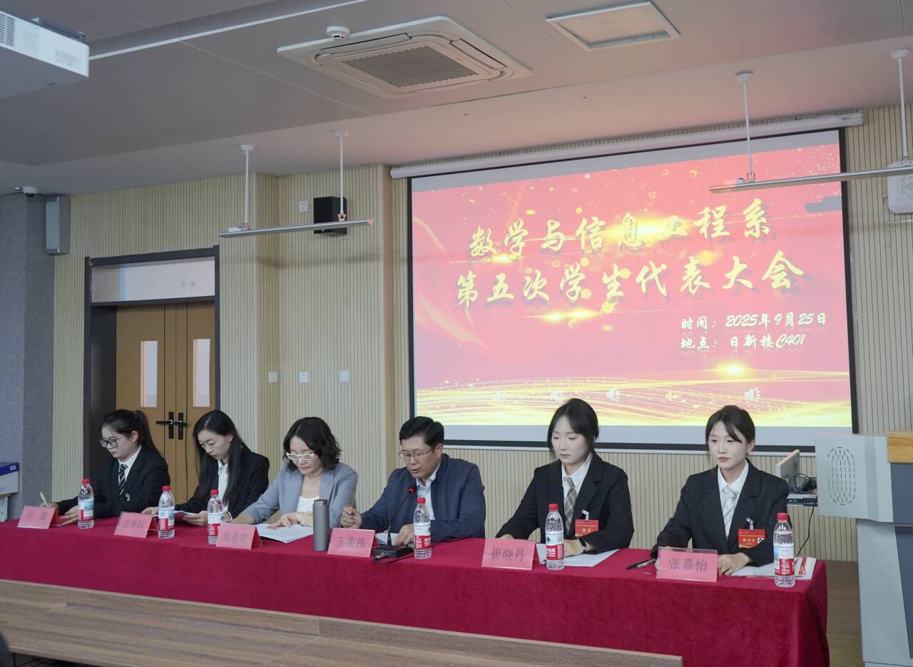 为进一步凝聚学生力量,推动系部工作高质量开展,9月25日,数学与信息工程系第五次学生代表大会于日新楼C401教室隆重召开。系党总支书记王宪伟、校团委组织部副部长周希芹、校学生会负责人崔晓丹、系团总支负责人田秀娟及数信系各专职辅导员出席会议,75名学生代表参会。