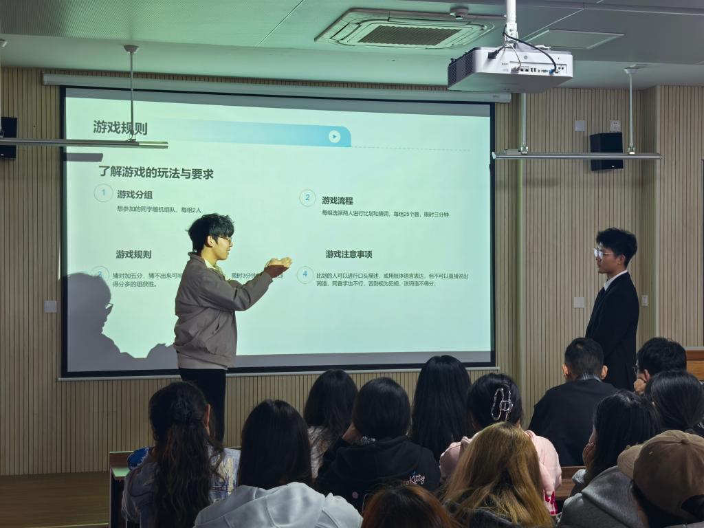 活动以一场轻松的心理测试拉开序幕,同学们在自我情绪的深度探索与坦诚的交流分享中卸下防备,逐步敞开心扉,为整场活动莫定了温暖的基调。随后的“你比划我猜”环节,参与者围绕心理关键词用生动的肢体语言与默契配合展开演绎与竞猜,现场气氛热烈,掌声与笑声不断。紧接着,权益部特邀同学献唱,悠扬的歌声萦绕现场,将现场情绪推向高潮,为后续的观影环节营造出沉浸式的温暖氛围。活动在短片观赏与感悟分享中落下帷幕,同学们伴随影片静心体会情感流动,真诚交流内心触动,在彼此的共鸣与理解中,收获了直面情绪的勇气。
