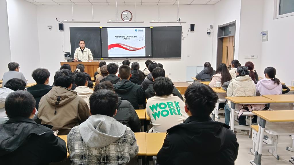 在软件工程专业讲座中,孔祥兵主要围绕Java+AI复合型技能培养核心,详细讲解了人工智能与软件工程的融合路径,介绍了鸿蒙应用开发、信创适配等前沿课程模块,帮助新生明确“基础筑牢+技术攻坚+实践赋能”的学习方向,理解专业在数字化转型中的重要价值。电子信息工程专业讲座中,李克坚以集成电路产业为核心,从国家战略定位切入,结合万亿产业规模、全球79%芯片进口占比等关键数据,生动阐释了集成电路作为“现代工业食粮”的重要地位。他还详细讲解了设计、制造、封装测试的完整产业链,以及数字IC设计、工艺工程等热门岗位需求,结合国家及地方政策支持,分析了行业23万人才缺口的就业机遇,强调了产教融合对技能提升的重要作用。