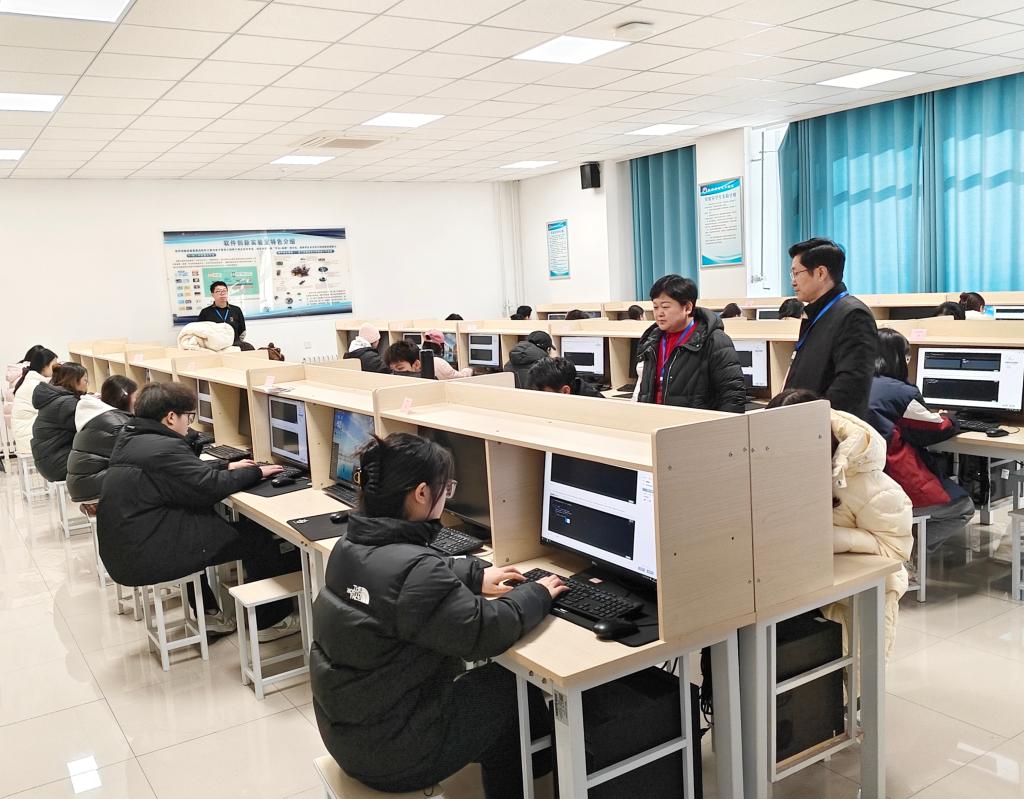 为深化职业技能人才培养,夯实学生计算机专业实操能力,12月27日,数学与信息工程系于力行楼A309、A311举行聊城大学东昌学院计算机程序设计员职业技能等级认定测试。系党总支书记王宪伟、系主任张晶、系副主任王开宝、教学秘书张云笛、实验员李新炜到现场巡查,保障考试规范有序进行。