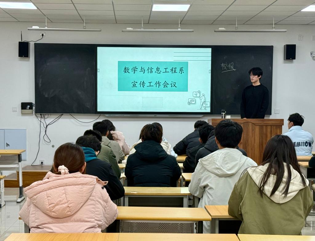 为进一步提升系部宣传工作质量,营造良好的舆论环境,11月16日,数学与信息工程系在日新楼b504召开宣传工作会议。本次会议由系学生会宣传部工作人员杨景云主持,2024级、2025级本专科班长及宣传委员参加。